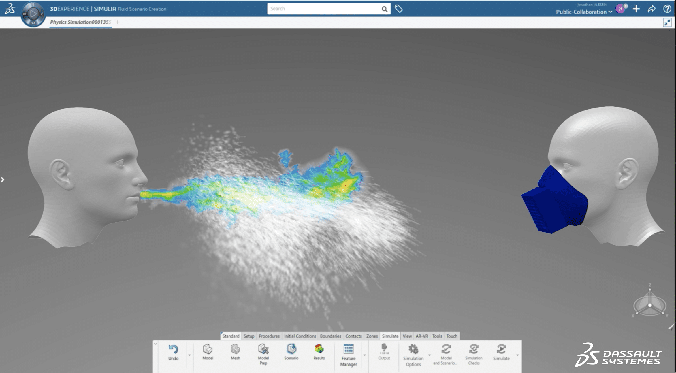 Dassault Systèmes utiliza sus aplicaciones de simulación SIMULIA PowerFLOW para desarrollar una simulación computacional de un estornudo que proporcione información sobre la física del flujo de estornudos. SIMULIA ya se usa ampliamente en las industrias aeroespacial y automotriz para generar simulaciones dinámicas de fluidos y flujos de aire.
